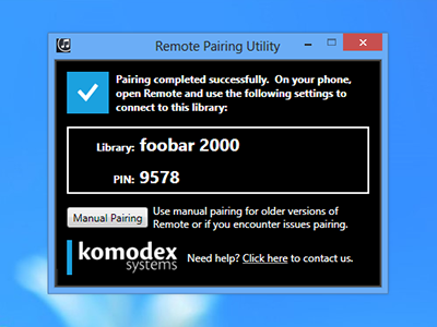 The Pairing Utility will display your library's name and a PIN to be entered on your phone.